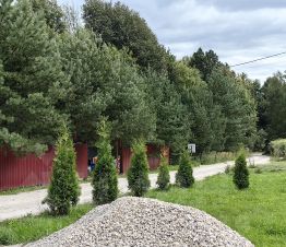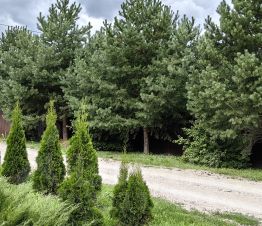 Дом в сосновом бору, на участке 25 сосен от 8-ми до 10 метров, возраст деревьев 12 лет, за границами участка также парк разнообразных деревьев.