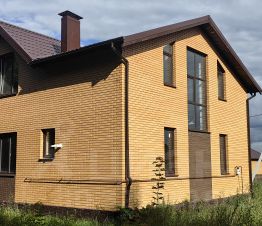 В доме три спальни по 14 кв.м каждая, большая бойлерная, которая также используется как постирочная, и просторная гостиная-кухня площадью 32 кв.м. Высота потолков составляет 3 метра. Фундамент выполнен по свайно-ростверковой технологии. Стены возведены из газоблока толщиной 300 мм с утеплителем из экструзионного пенополистирола (ЭППС) толщиной 50 мм и вентзазором 20 мм, облицованы кирпичом. Крыша покрыта металлочерепицей толщиной 0,5 мм с утеплителем 150 мм и каркасом из доски 50х150 мм. Окна установлены от фирмы Rehau с зимним пакетом.