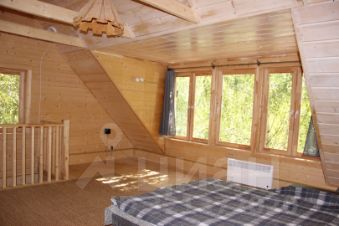Рядом с домом находится отличная баня из осины размером 3х5 метров с пологом на втором этаже. В бане есть все необходимое для комфортного отдыха: парилка, душ и туалет.