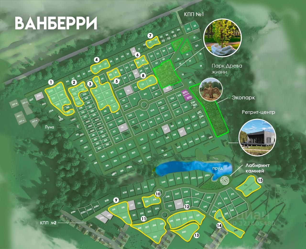 17 соток в Йога-посёлке "Vanberry Village" Ванберри Вилладж. Поселок классный, со своей философией, люди открытые, приветливые, позитивные, дружественные и сплоченные! Есть общие зоны, такие как Луна, костровое место, ретрит-центр, где по утрам занимаются йогой) Также две супер баньки с травами и угощениями.