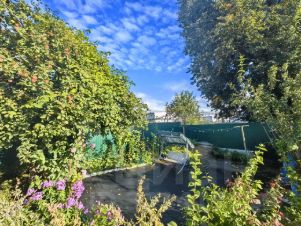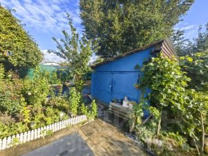 Небольшой ухоженный участок земли перед домом, есть теплица, гараж под садовый инвентарь и технику, игровая зона с садовыми качелями.