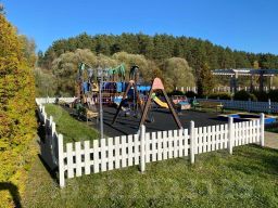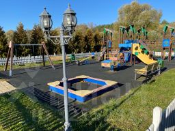 В к/п оборудована вся необходимая инфраструктура для отдыха: детская площадка, спортивная площадка (баскетбол/теннис/футбол/зимой заливают каток), огромная общественная беседка с зоной отдыха и барбекю, уличные бассейны и сауна. Территория огорожена по периметру забором, дороги асфальт, освещение улиц, КПП со шлагбаумом, уборка дорог от снега и вывоз мусора.