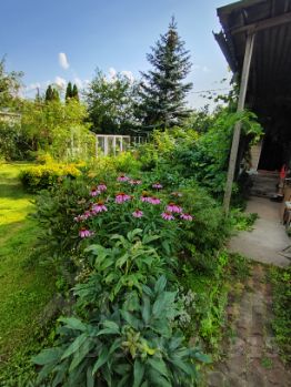 Уютный 2-х этажный дачный домик. Внутри обшит вагонкой, снаружи сайдинг. В доме 3 комнаты, столовая, кухня с варочной 2-х комфорочной газовой панелью (газовый баллон на улице), ванная с душевой кабиной, горячая и холодная вода (подается из колодца), небольшая террасса. На участке есть парковочное место, хозблок, летний душ, небольшой огород, цветник, плодовые деревья и кусты, небольшая полянка.