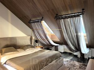 Третий этаж выделен специально для взрослых членов семьи: прекрасная мастер-спальня с панорамными видами благодаря расположенным мансардным окнам, и элегантный рабочий кабинет обеспечивают идеальные условия для полноценного отдыха и продуктивной работы.