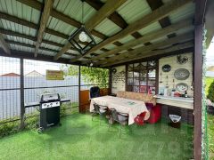 навес с зоной для барбекю и закрытым домиком для проведения мероприятий и комфортного отдыха в плохую погоду;