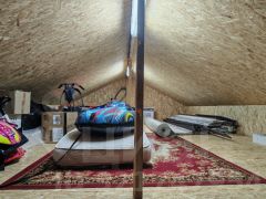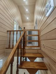 двухэтажный каркасный дом (Двойной каркас с утеплением 200мм) площадью 121 кв. м (без учёта террасы и гаража); внутри дом обшит блокхаусом с телым швом.