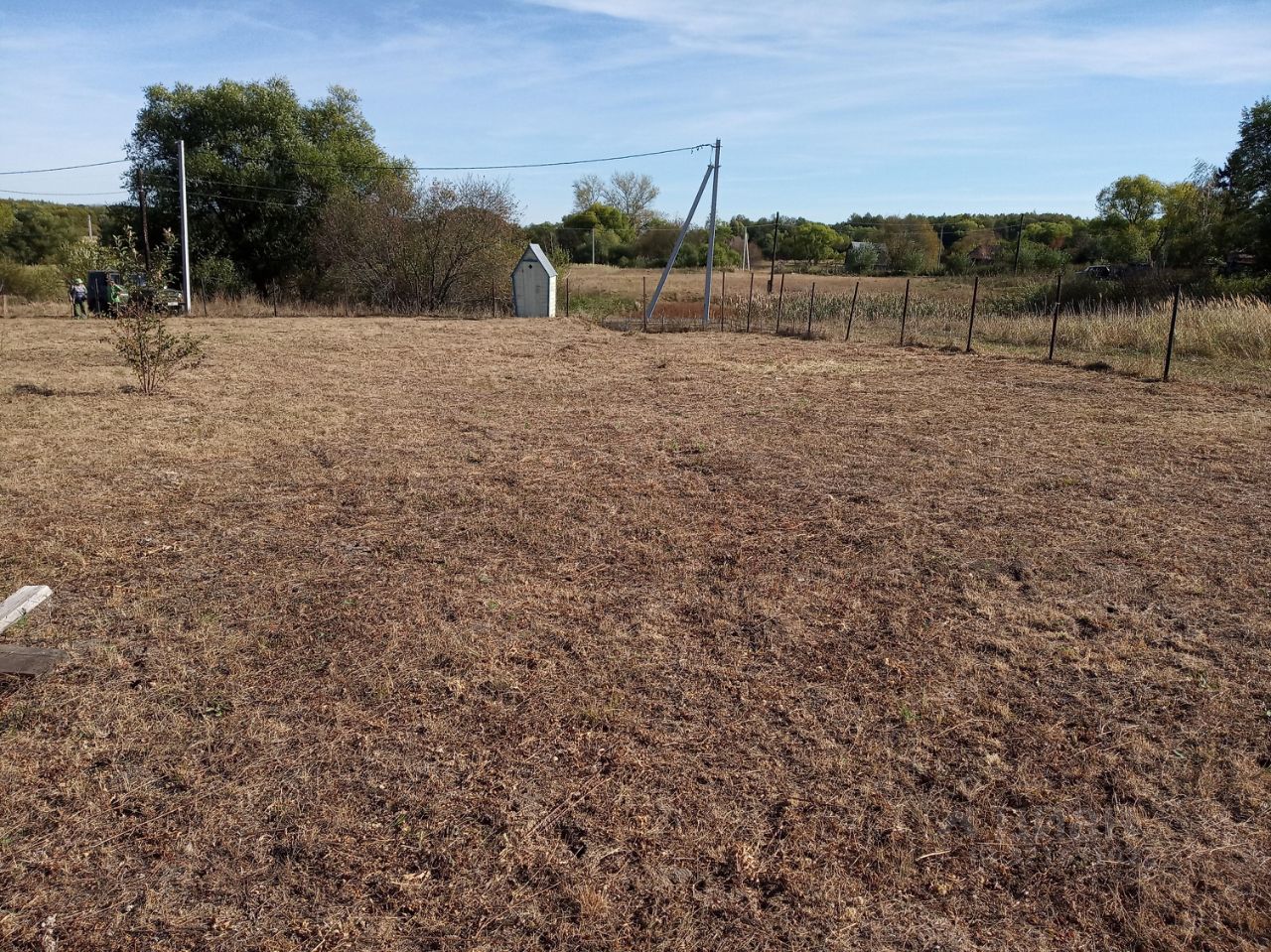 Есть бытовка 12м. кв.м.,и туалет. Электричество по границе участка. Вода-колодец на 7 колец. Огорожен сеткой- рабицей. ЛПХ.