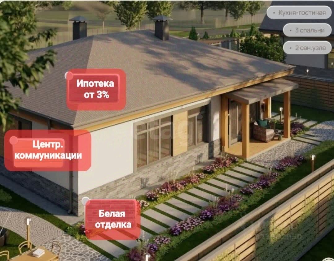 2х контурный котел, заведение в дом центральных коммуникаций (газ, водоснабжение, электричество), септик, белая отделка стен, отмостка вокруг дома, благоустройство прилегающей территории, забор с открытными воротами, место под две парковки.