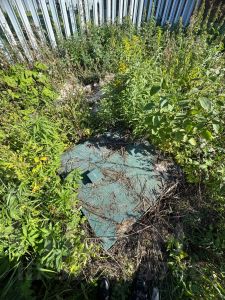 забор из профлиста с входной группой и откатными воротами со стороны улицы и ограждения между соседними участками