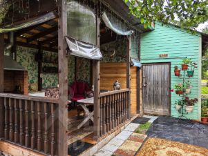 На участке плодоносящий фруктовый сад, баня, крытая зона для барбекю с кирпичным мангалом, беседки, просторный двор с площадкой под автомобили и сквозным проездом (владельцы катеров оценят по достоинству), подсобные постройки.