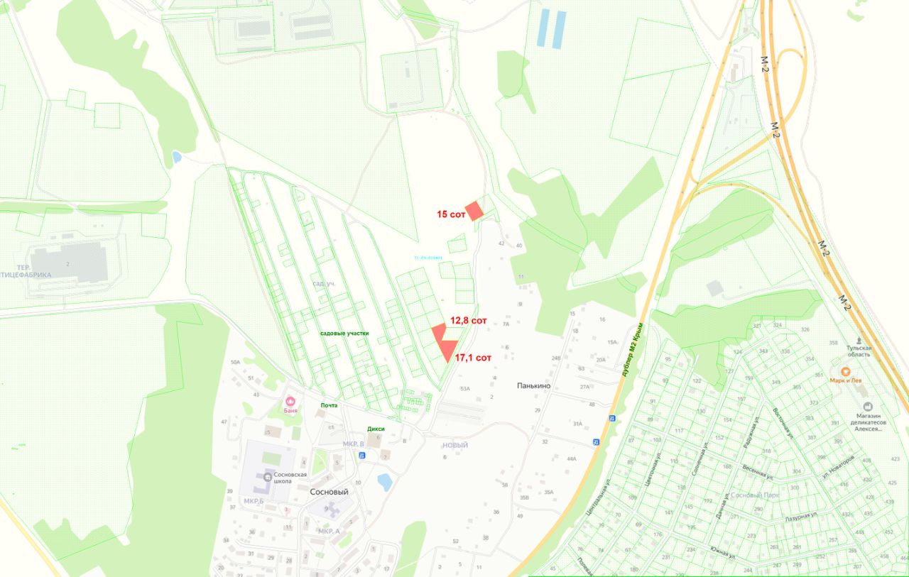 Продам земельный участок для ИЖС площадью 12,8 соток в Тульской области, пос. Сосновый (переуступка прав аренды на 20 лет). Участок расположен в 90км от МКАД по Симферопольскому ш. М2, до г. Серпухов 20км, до ж/д станции Приокская 8км.