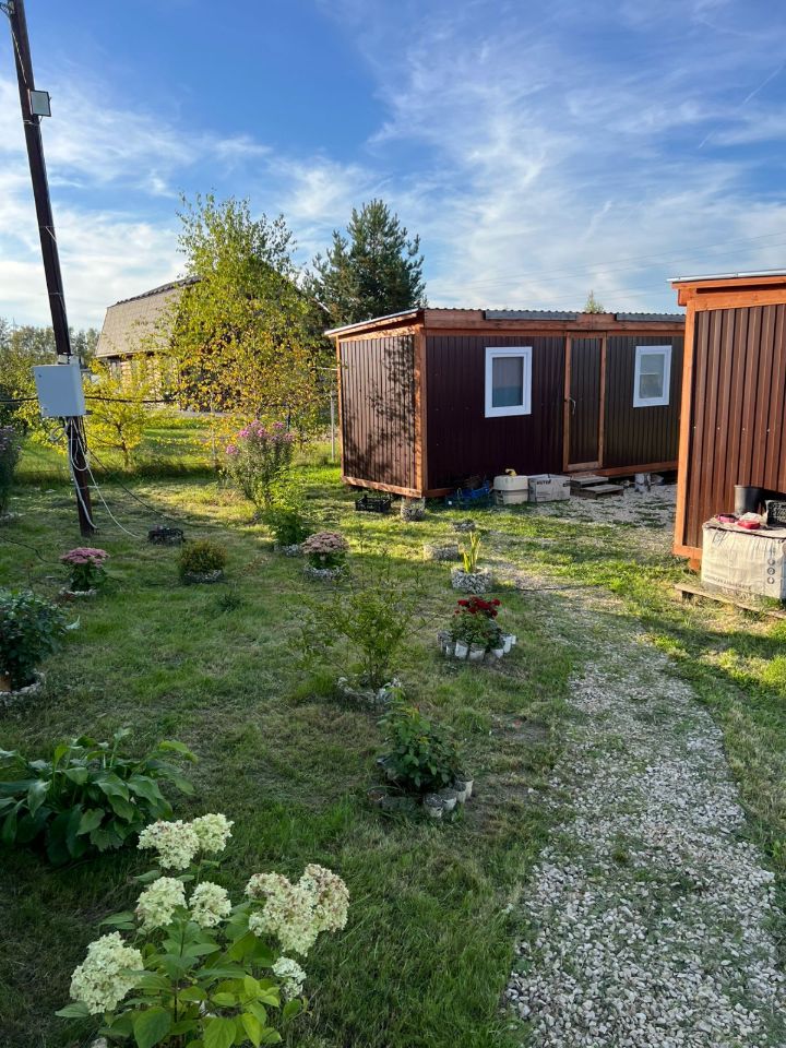 Продается участок 20 соток правильной формы. На участке есть две бытовки размером 6м*2,3м каждая. Одна бытовка оборудована кухней, во второй бытовке две спальни с двухспальными кроватями. Есть вода (скважина 14 метров), электричество, уличный туалет и летний душ. Участок огорожен забором. Рядом река Ока с песчаным пляжем, вокруг лес.