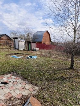 Казацкий можжевельник на входе. У забора сирень и калина. Дорожки выложены из кружков дерева. Площадка под мангал. Есть место под бассейн ( круглый 3. 05). Участок немного с уклоном.В перспективе газификация CHT.