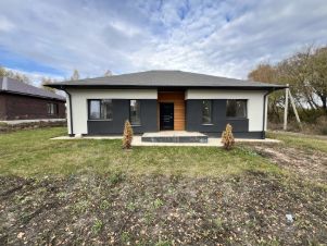 Одноэтажный дом площадью 120 м² расположен на первой линии коттеджного посёлка Ямны. Площадь застройки — 200 м², земельный участок — 5 соток.