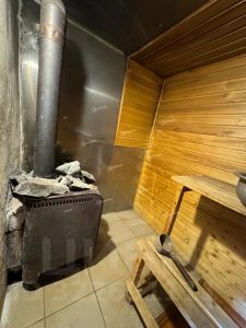 Есть гараж и хорошая баня.