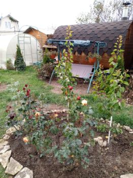На участке есть малина, черная, белая, красная смородина, крыжевник, виноград. Также есть Вишни, алыча, черешня, яблони, груши, абрикос, персик, слива.