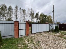 Территория участка огорожена забором в круг с откатными воротами, огромное пространство для парковки автомобиля перед домом и территории для отдыха и досуга с семьей и детьми.
