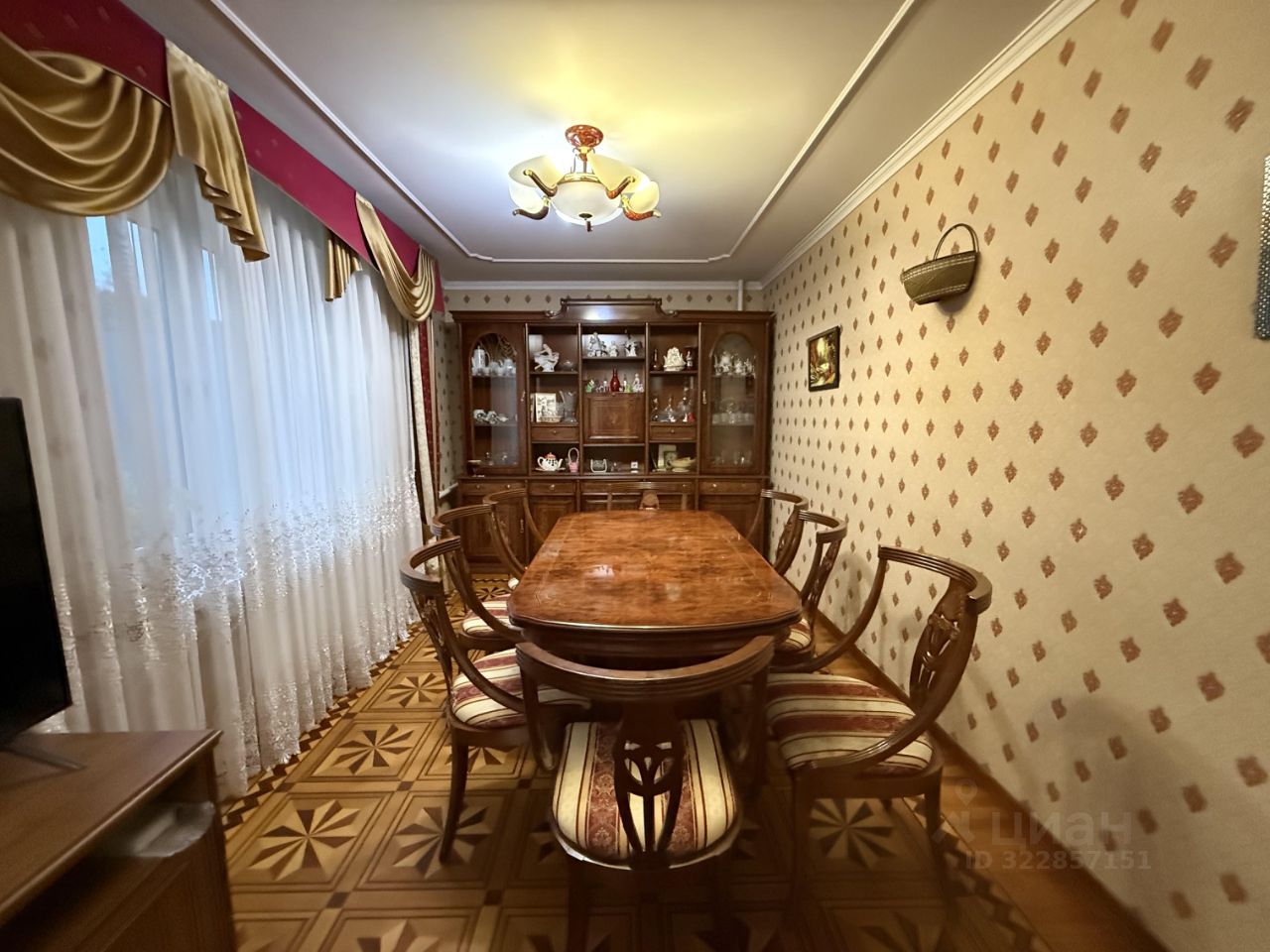 Паркет художественный резной из комбинированного дерева, в каждой комнате разный. Лестница-ясень. Двери- массива дуба.