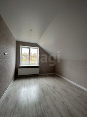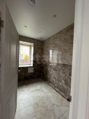 Tёплыe полы на первом этаже (плитка в кухне-гостиной и санузлах), ламинат в комнатах и на втором этаже, натяжные потолки с встроенными светильниками, на стенах - обои.
