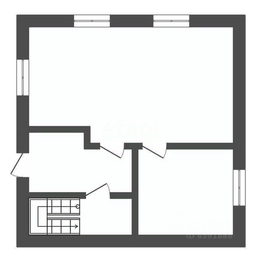 Планировка: 4 комнаты. На первом этаже - две комнаты, санузел и просторная кухня-гостиная с камином-печью. На втором этаже - две спальни и кладовая-гардеробная.