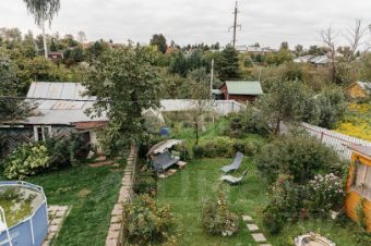 Площадь: Участок 8 соток с плодоносящим садом, двумя теплицами и зоной отдыха.