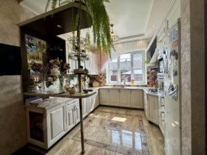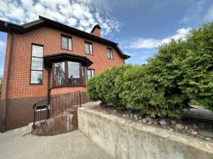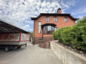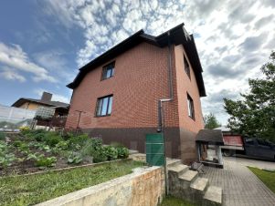 Общая площадь дома 215 кв.м, три этажа, площадь застройки 120 кв.м. Дом из облицовочного кирпича красного цвета с декоративным белым швом, крыша мягкая черепица. Участок крайний с выходом к пруду и лугу.