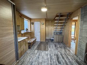 На участке так же имеется большая баня 111 кв метров , с прекрасной верандой и видом на луга. На втором этаже располагается кухня и гостинная, что позволяет использовать дом под гостевой.