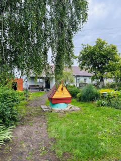 В доме просторная прихожая, кухня, 2 комнаты, санузел. Основные коммуникации проведены (вода, свет, газ), АОГВ. Земля обработана. Много цветов на территории усадьбы, свой колодец с ключевой водой. Имеется большой сухой погреб, кирпичный сарай и гараж. Расположение дома более чем удачное, улица тихая, усадьба просторная.