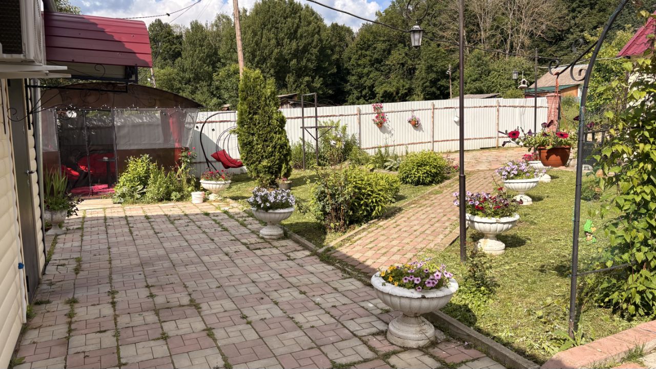 В дом заведены центральные коммуникации (вода, свет, электричество, газ), канализация - выгребная яма. Дом кирпичный, все окна пластиковые. на территории имеется гараж 6*10 метров, баня, подвал, летний душ и туалет, небольшой сарайчик.