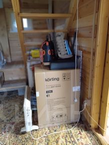 Дом 90кв. м из бруса проконопачен и обшит гидроизоляционной тканью и вагонкой внутри. В доме сухо и запах дерева. Окна и входная дверь из пластика для зимнего проживания. На 2-ом этаже две спальни каждая 17, 5кв. м. Стены обшиты евровагокой и потрачены белой водоэмульсионной краской, мебель новая. Между спальнями холодильник и гардеробная комната, которая имеет 3 раздвижные двери, одна дверь с зеркалом. На 1 этаже кухня гостиная с мебелью и техникой, одна спальная и комната сантехническая (надо оборудовать). Есть стиральная машина б/У автомат узкая, стиральная машина механическая в душевой на улице, новая в упаковке посудомоечная машина, холодильник, газовый обогреватель, Эл. обогреватели, 2газ. балона 27л.