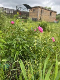 Участок ухожен, на нем растут сосны и плодовые кустарники, есть зона отдыха и хозяйственная постройка для хранения инвентаря.