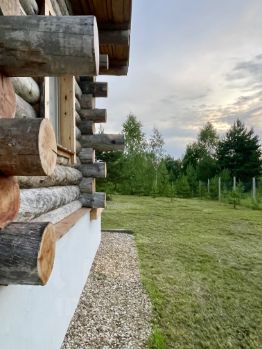 Продается новый дом баня из полярной сосны кело. Дом построен на прямоугольном участке 30 соток. Это край села, на лбу холма в начале его ската. Половина участка занята сосновой порослью и есть несколько больших сосен. Виды на сосновый бор и соседние холмы. Место и дом как с пейзажной картины Уголок нетронутой природы при этом до центра села с магазинами и всякими озонами пять минут на машине. Доставка вкусвилла до дома. Дорога асфальт и щебень прямо до участка. Из центра Москвы с учетом пробок 2 часа на машине.