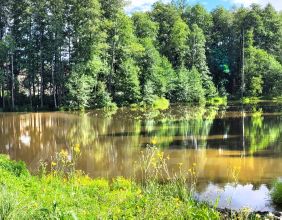 - На территории СНТ большое ухоженное озеро в 5 минутах ходьбы (можно купаться).
