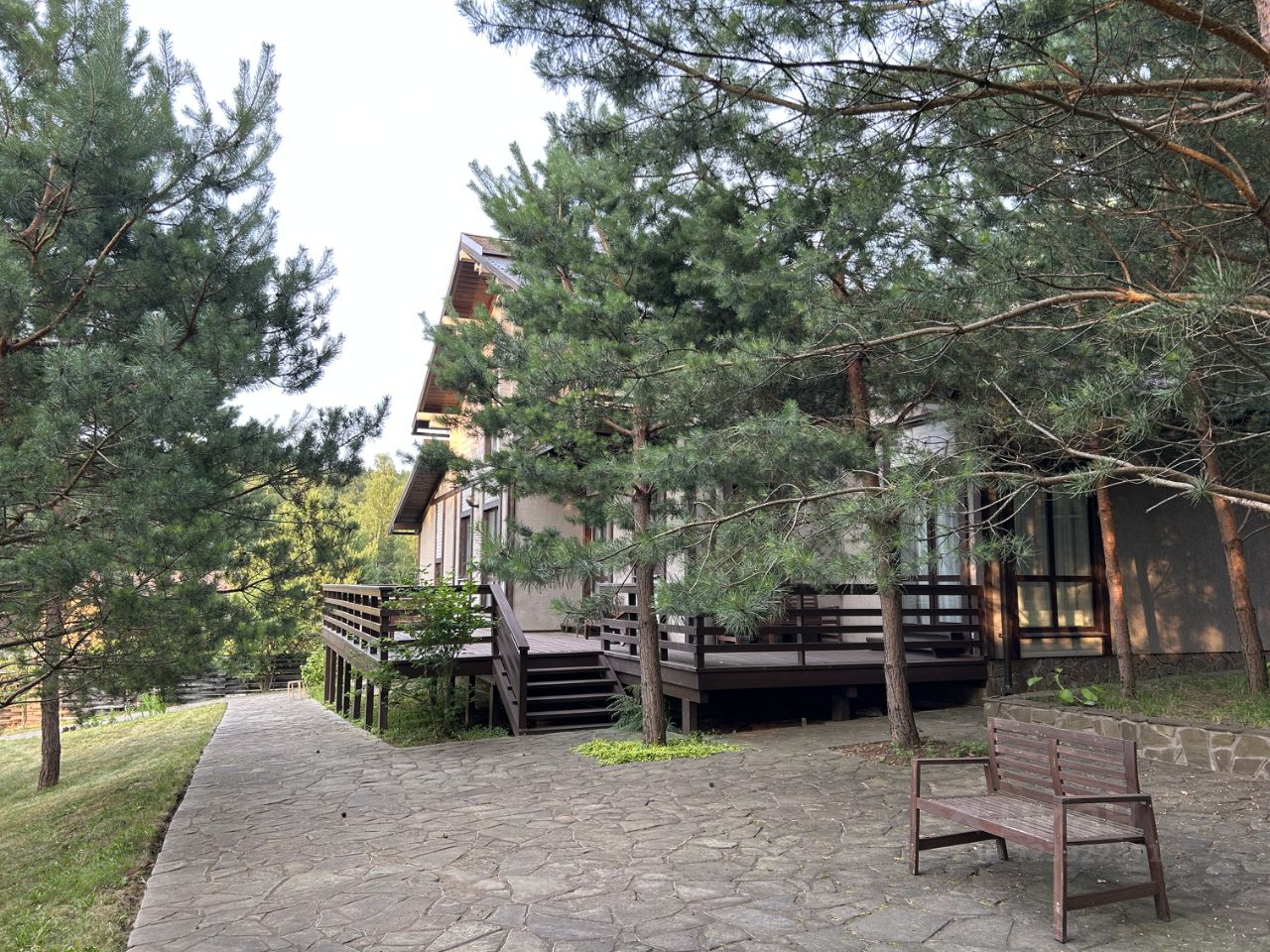 На участке выполнен ландшафтный дизайн с террасированием, зонированием и дренированием. Дорожки, гараж и террасы выложены натуральным камнем на бетонном основании. На участке сосны, березы, плодовые деревья и кустарники; цветы