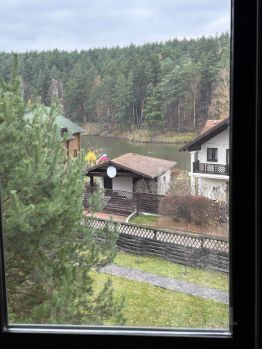 - 1й этаж: прихожая, кухня-столовая-гостиная; кабинет/спальня, санузел с ванной, душем и сауной, котельная, терраса с панорамным видом на лес и реку.