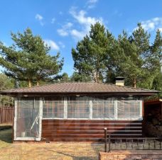 Ухоженный участок огражден металлическим забором на фундаменте с откатными воротами с электроприводом. Обустроенная территория с подсветкой. Подъезд и дорожки выложены тротуарной плиткой. Выгребная яма на 5 колец, разводка воды по участку (3 точки), вывод тёплой воды на улицу (для полива, бассейна и др.), большой круглый каркасный бассейн D5 м.