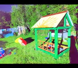 1.7 км ,20 мин шагом до классной детской площадки в д. Скорнево, также там есть спортивная коробка.