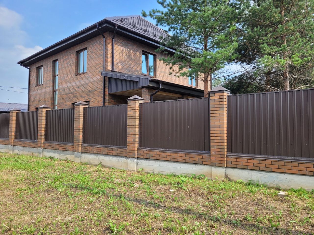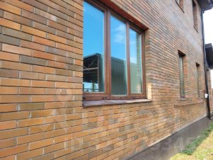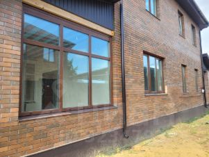 Высокое качество строительства: ленточный фундамент, дом полностью построен из керамического блока, облицовочный кирпич - Браер баварская кладка, плита перекрытия, металлочерепица, трёхкамерные стеклопакеты VEKA.