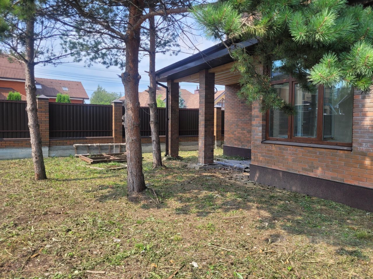 В стоимость входят: заезд на участок выложенный брусчаткой, оформление садовых дорожек, водоотведение в дренажную систему, отмостка дома, отсыпанный и выровненный участок, укладка газона, забор с 4-х сторон, откатные ворота, калитка с электронным замком, входная группа, навес на 3 автомобиля.