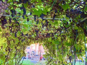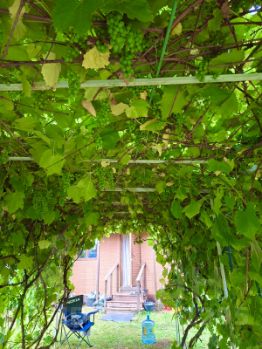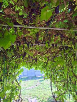 кусты : виноград , смородина, крыжовник.
