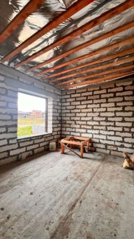 Дом построен из газосиликатных блоков, облицовочный кирпич BRAER, капитальный фундамент (свайно-ростверковый), плиты перекрытия, трехкамерные стеклопакеты, профиль 70 мм, крыша перекрыта металлочерепицей. На этаже большая кухня - гостиная, с выходом на веранду, санузел, бойлерная, гардеробная, три спальные комнаты.