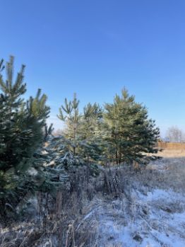 По дальнему периметру участка высажено более двадцати сосен, также плодовые кусты (смородина черная, красная, крыжовник), деревья (вишня, слива).