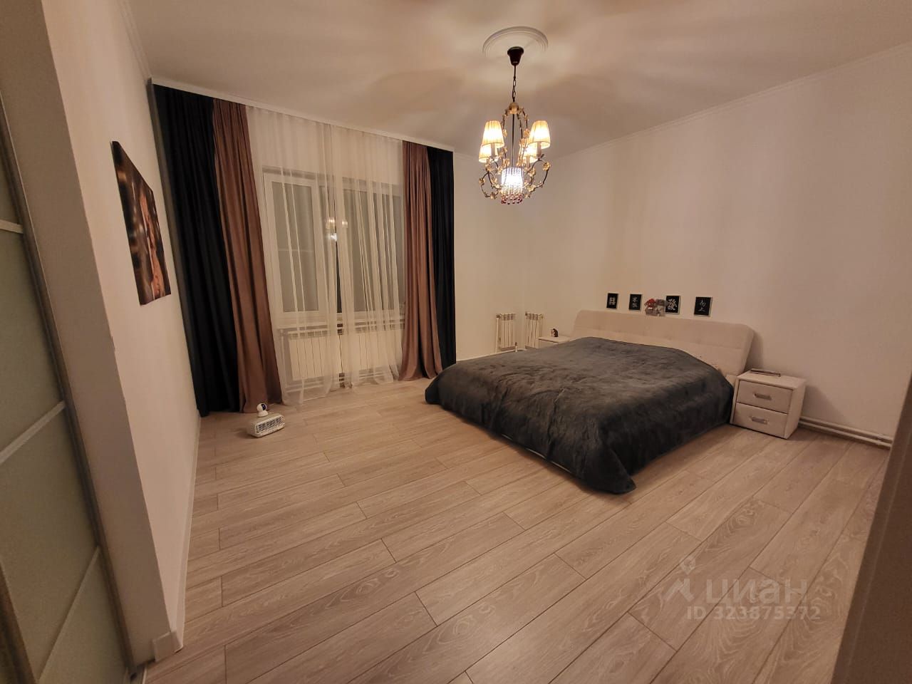 Взрослая спальня с большой кроватью и подъёмным механизмом для хранения. Ортопедический матрас Аskоnа 180х200. Встроенным шкафом-купэ под потолок (3м). Озонатор воздуха.