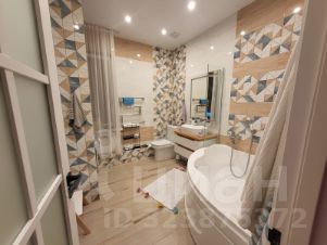 Ванная комната 9м2 с теплыми полами, угловой ванной (130х130), со стиральной машиной с функцией сушки и дистанционным управлением, большое зеркало с радио, bluеtооth, подсветкой и датчиком температуры воздуха: приточно-вытяжная вентиляция с датчиком движения.