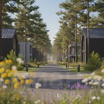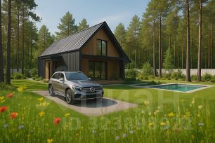 Природный ландшафт: высокие сосны, продуманный рельеф, атмосфера уединения.