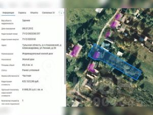 В рамках процедуры банкротства должника с торгов реализуется жилой дом с земельным участком по адресу: Тульская область, Киреевский р-н, д. Александровка, Лесная ул, д. 26Площадь дома: 65,4 мКадастровый номер дома: 71: 12: 050206: 317Площадь участка: 1 600 мКадастровый номер земельного участка: 71: 12: 020316: 72Категория земель: Земли населенных пунктовВид разрешенного использования: для ведения личного подсобного хозяйства