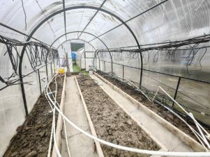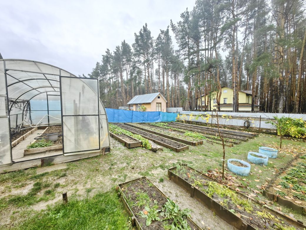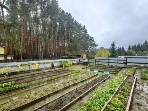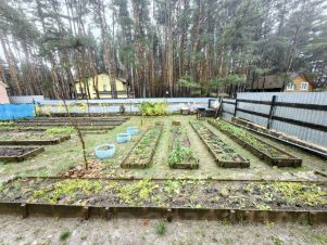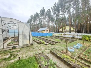 Две теплицы, много грядок для выращивания любых культур, также растут взрослые плодово-ягодные деревья и кустарники.