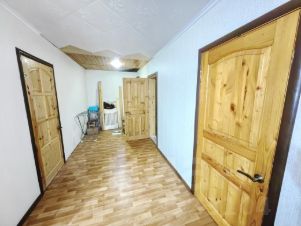 При входе в дом большая закрытая терраса, далее в самом доме просторный холл, все комнаты изолированы, две большие спальни по 21кв.м. и одна поменьше 17кв.м., зал 28кв.м., удобная кухня 14.5кв.м., раздельный санузел вся ванная комната в плитке.