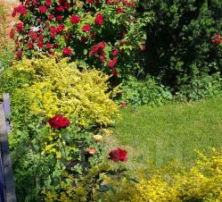 Территория дома огорожена, участок ухоженный, облагороженный зелеными насаждениями, разнообразными декоративными растениями. Участок прекрасно выглядит в любое время года.