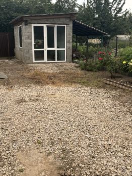 На участке есть ухоженный сад, с красивыми цветочками, которые вы можете увидеть на фото, также имеется отштукатуренная пристройка из блоков с панорамными окнами